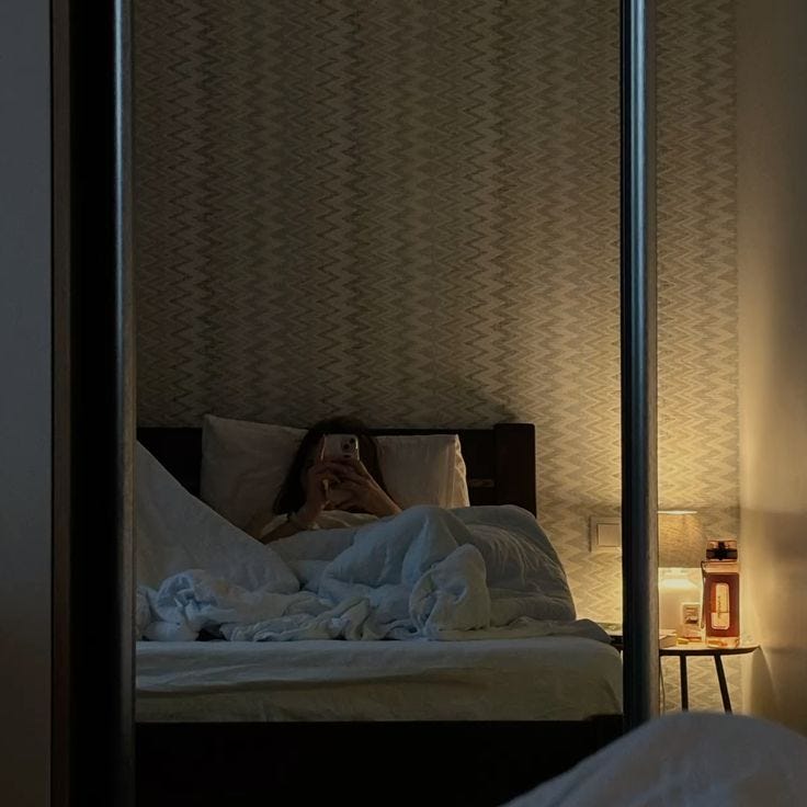 Antes de vivir con Andrés, pasé cinco o seis años viviendo sola, y ahí aprendí a disfrutar de mi solitud. Me acostumbré a mis tiempos, a mis silencios, a cenar conmigo misma sin sentir que faltaba algo. No es un tema de miedo: no me asusta dormir sola, ni estar en mi casa sin compañía. Más bien es que, con el tiempo, mi vida se ha tejido alrededor de un nosotros, y ciertos hábitos (como el de dormir) se han vuelto un acto de dos.